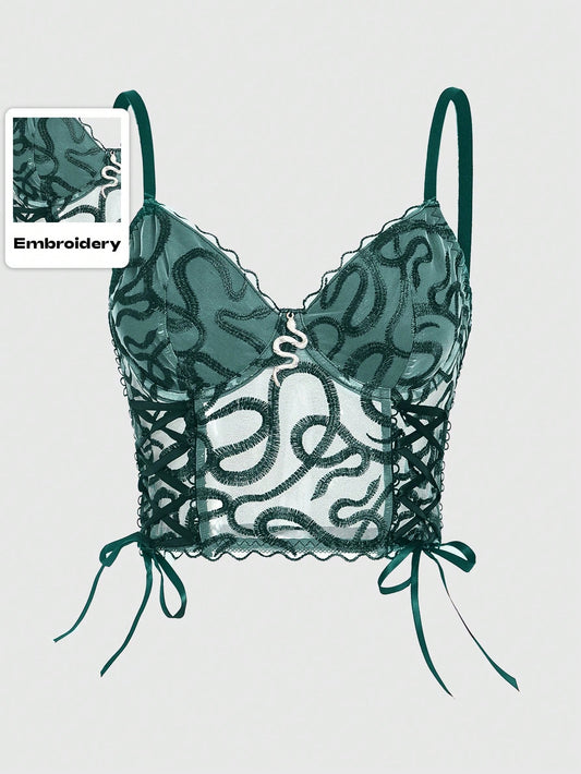 Alternative Goth Snake Embroidery Mesh Cami Top