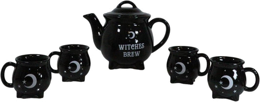 Witches Brew Black Cauldron Teapot And 4 Mugs