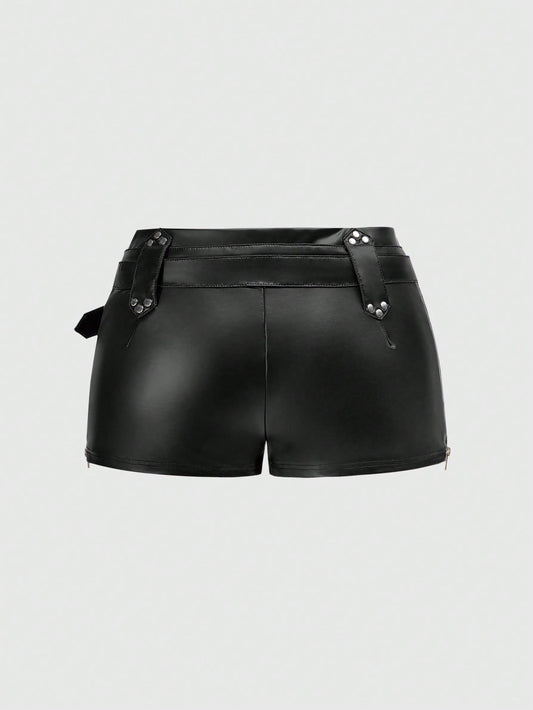 Goth Velvet Gothic Floral Metal Chain Short Low Rise Shorts