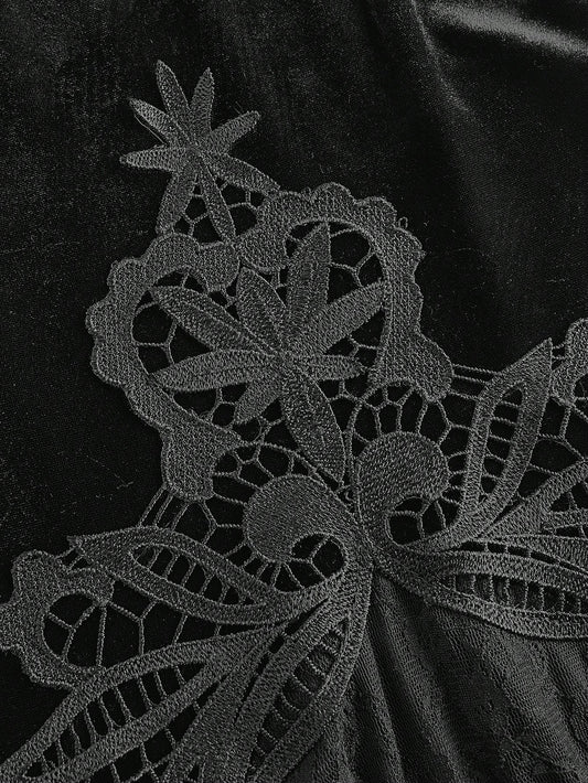 Gothic Victorian Velvet Embroidered Lace Trim Mermaid Skirt