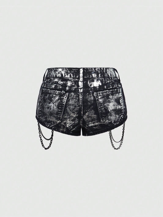 Alternative Bleach Washed Chain Low Rise Short Denim Shorts