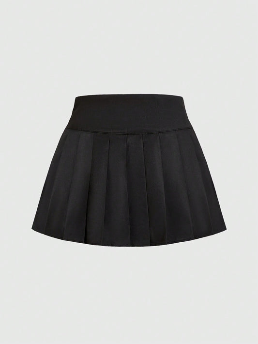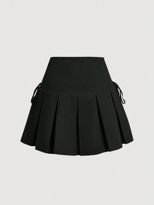 Goth Solid Lace Up Pleated Skirt
