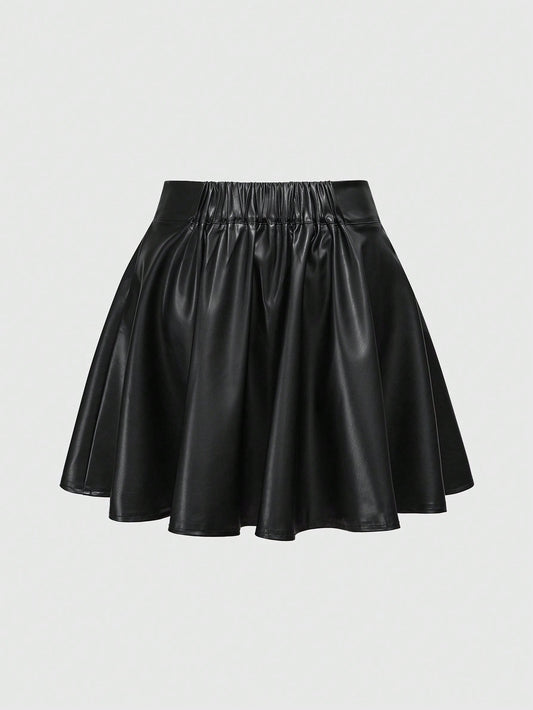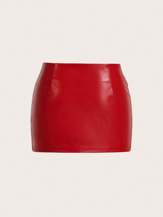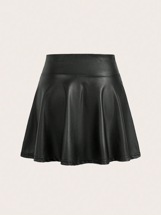 High Waisted Wet Look Pleather Skirt