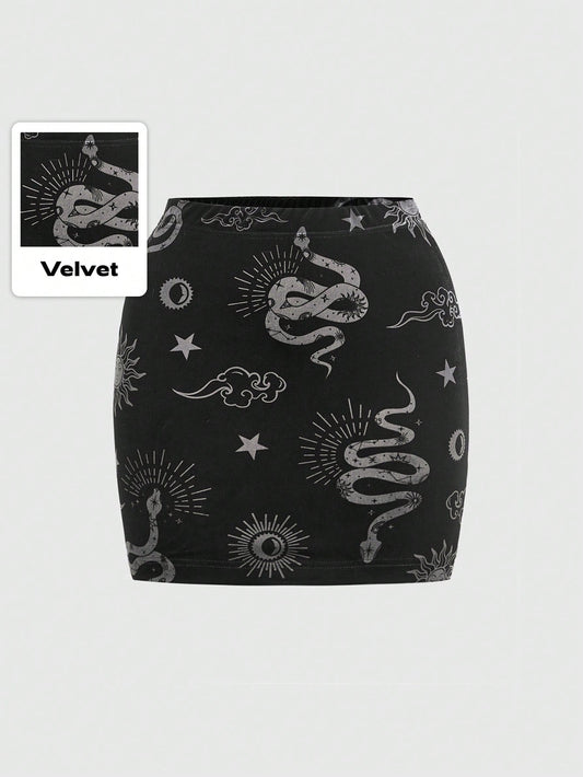 Goth Sun & Moon Graphic Skirt