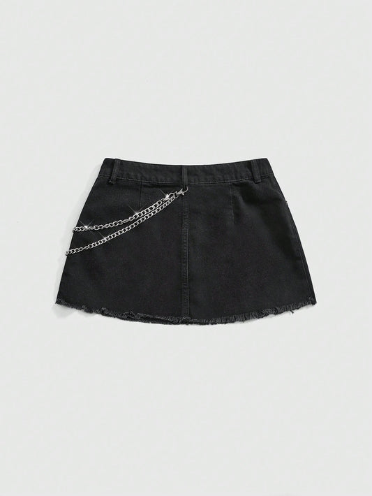Punk Mini Denim Cross Chain Decor Skirt