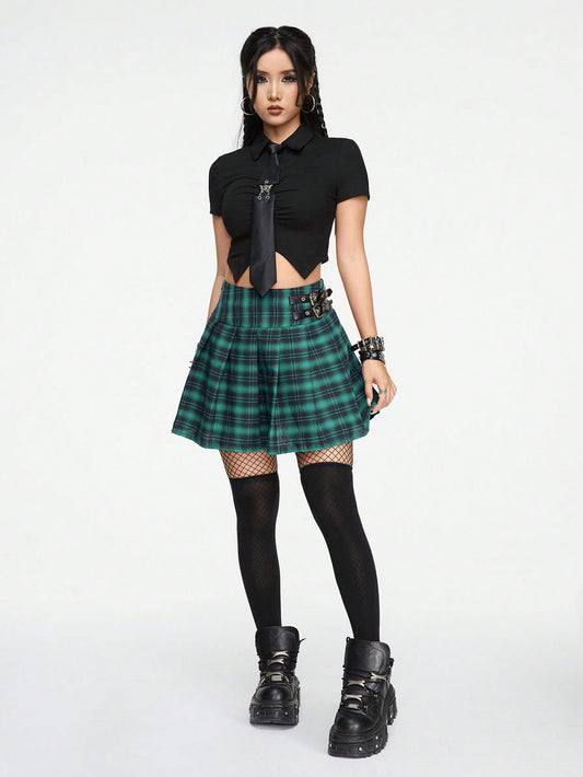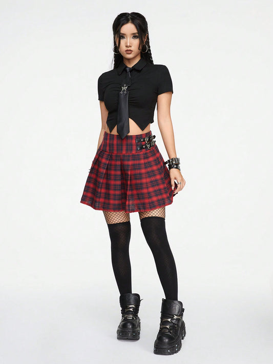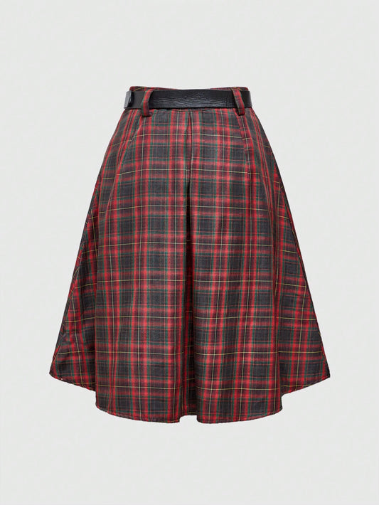 Grunge Punk Plaid Skirt With Belt