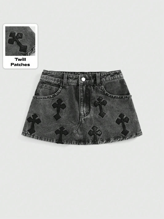 Grunge Cross Patch Skirt