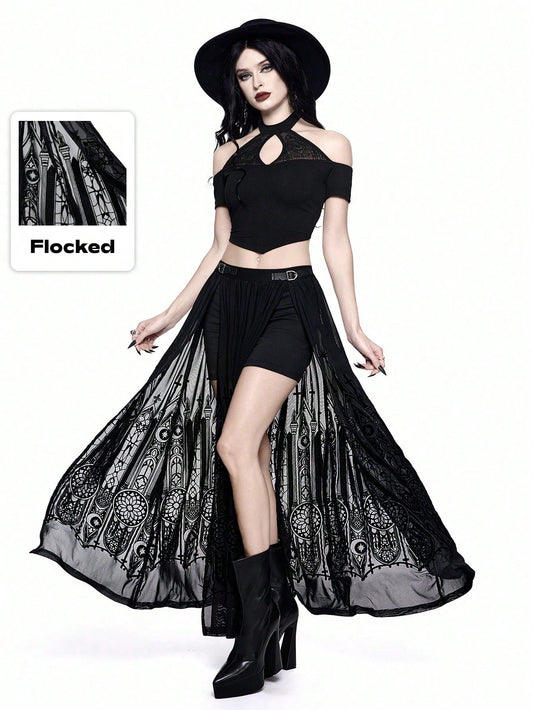 Gothic Cathedral Peek a Boo Mesh Long Skirt