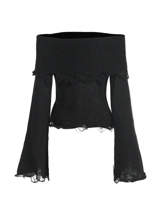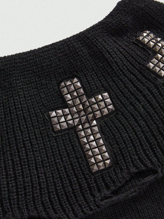 GrungeCross Rivet Design Backless Hollow Out Off Shoulder Fitted Knitted Sweater
