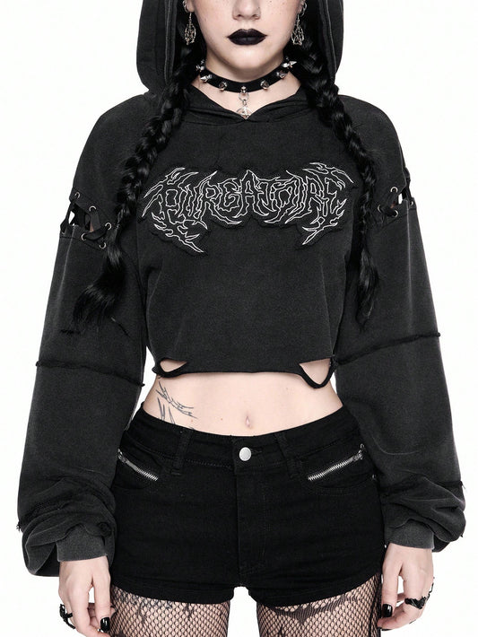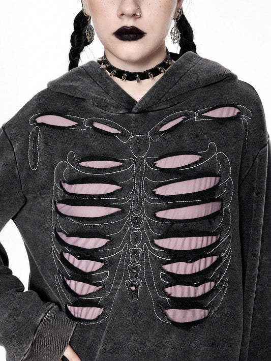 Gothic Distressed Hollow-Out Rib Cage Hoodie