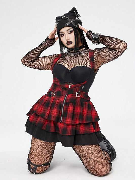 Plus Size Women Punk Plaid Dress