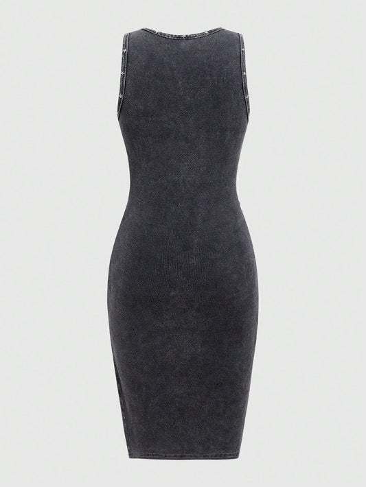 PUNK Sleeveless Dress With Rivet Decoration