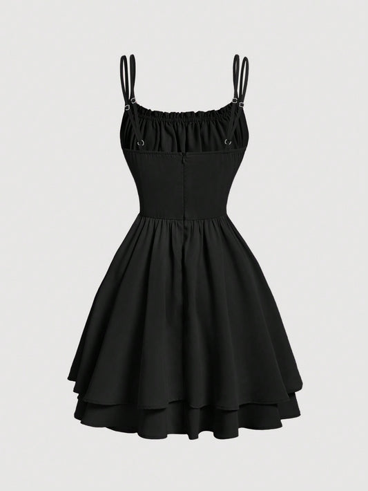 Goth Casual Solid Ruched Bust Cami Dress