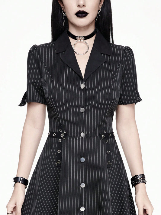 Sold outGoth Narrow-Striped Belted Dress