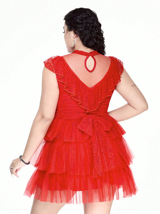 Plus Size Red Lace Multi-Layer Cake Dress