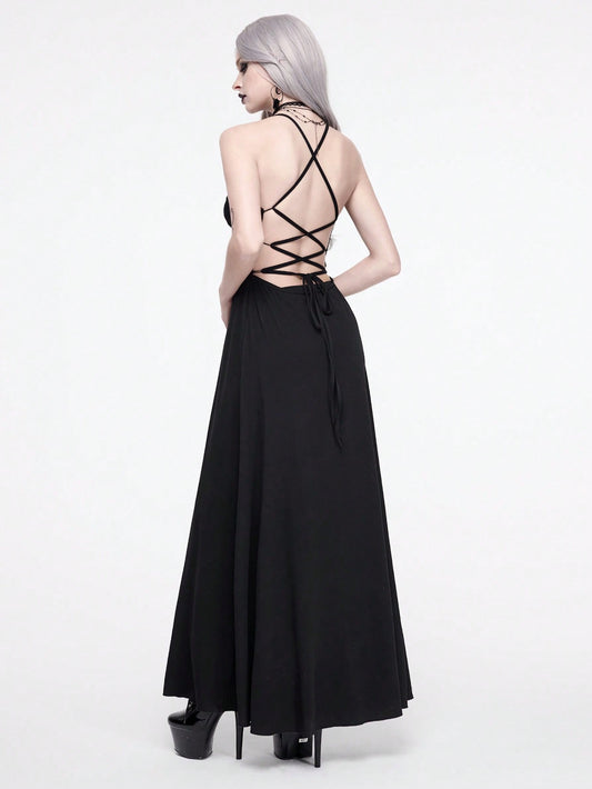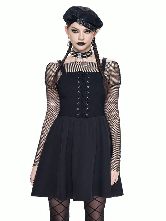 Witchy Goth Mesh Patchwork High Slit Maxi Dress