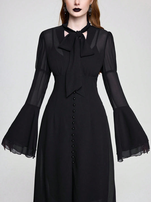 Goth Full Transparent Bell Sleeve Dress