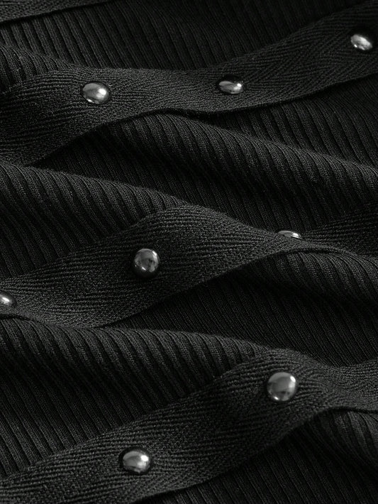 Punk Sleeveless Black Mini Dress With Rivets