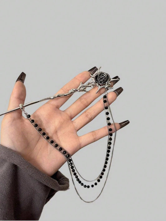 Punk Rose Tasseled Beaded Chain Hair Accessory