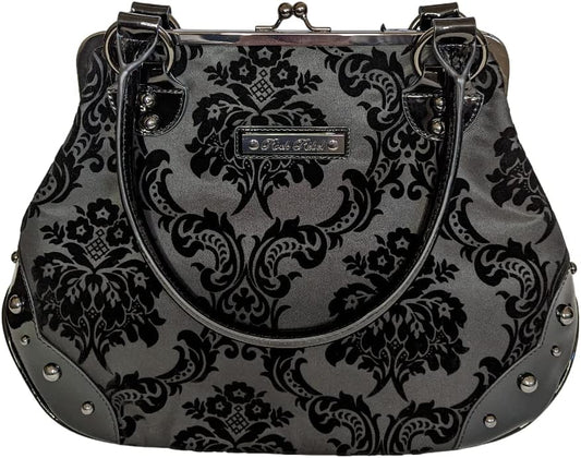 Mistress Black on Black Victorian Damask Retro Kisslock Purse