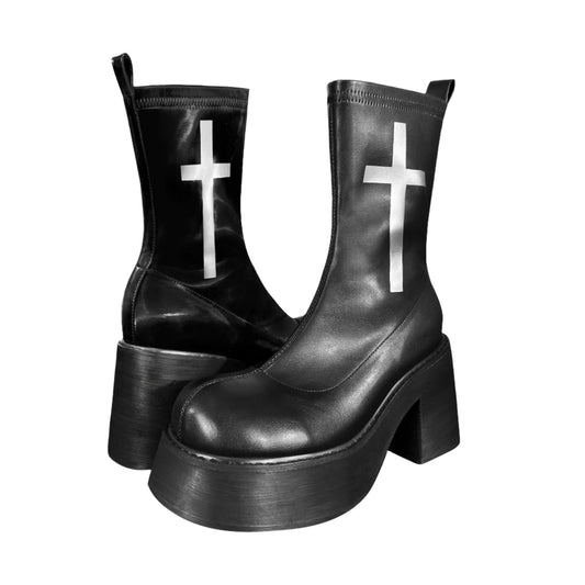 Punk Two Tone Lace up Zip High-top Bone Platform Ankle Boots