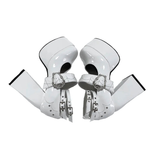 Spider Web Coffin Buckle Platform Gothic School Girl Shoes