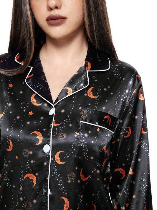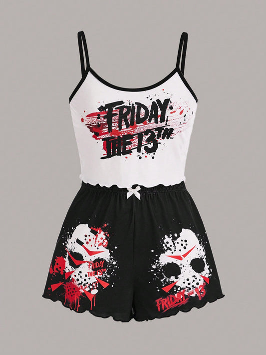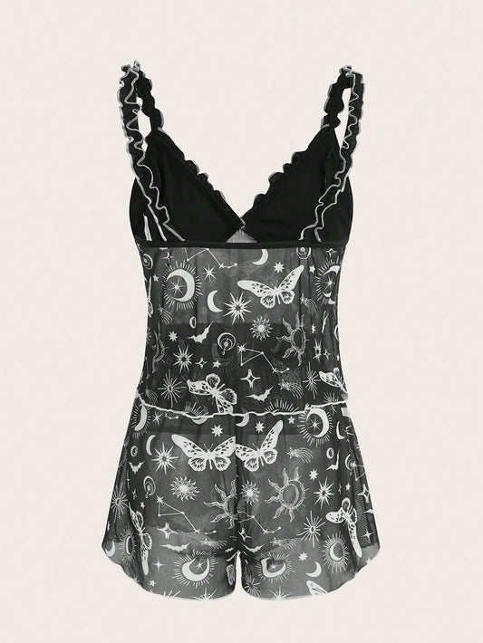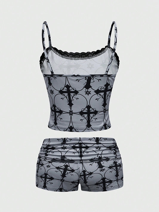 Death Moth Contrast Lace Cami & Shorts Pajama Set