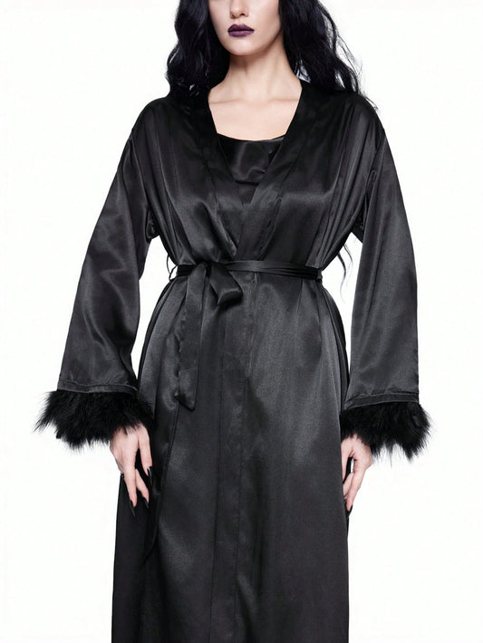 Green Witch Lace Patchwork Satin Camisole Pajamas Set
