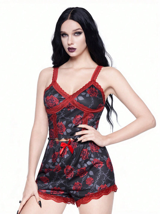 Gothic Romantic Rose Lace Camisole & Shorts Pajama Set