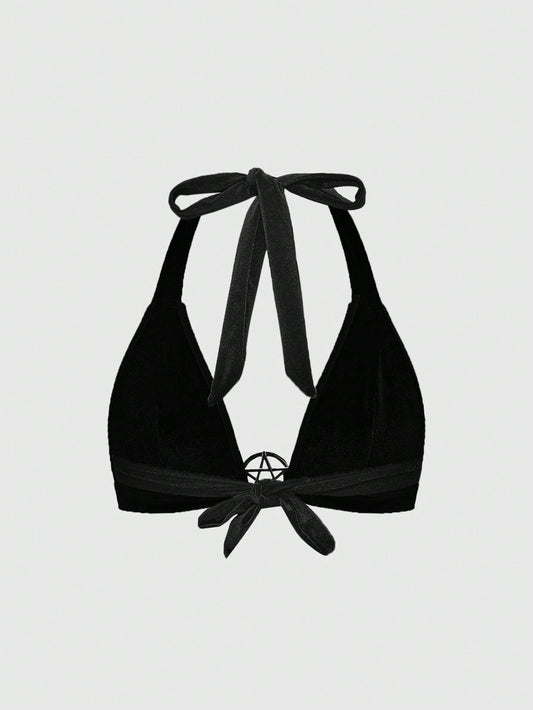 Gothic Velvet Studded Pentagram Lace-Up Bralette