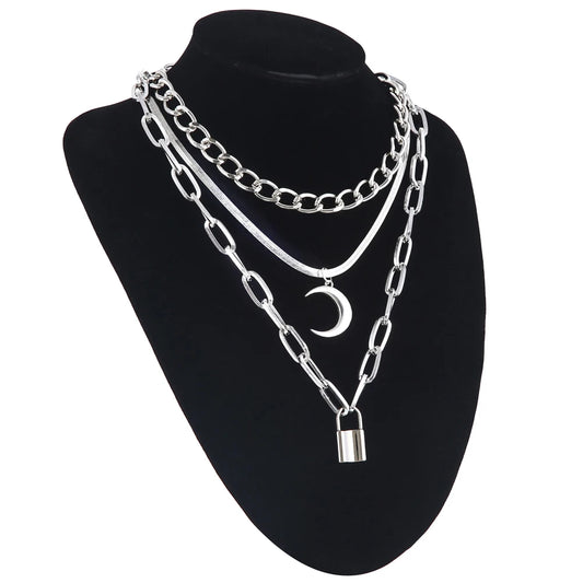 Antique Silver Plated Crescent Moon Crystal Pendant