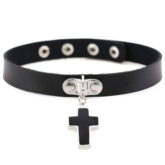 Inverted Cross Stainless Steel Punk Choker Necklace