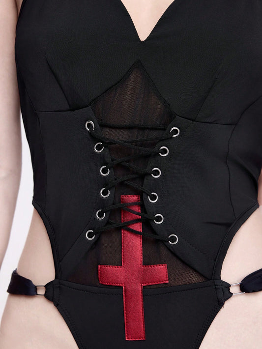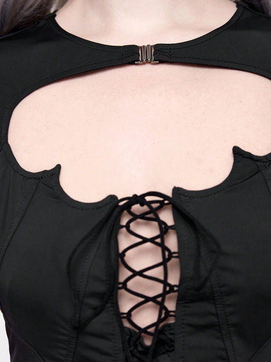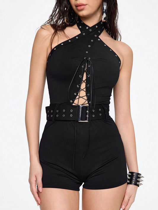 Punk Halter Backless Grommet Lace-Up Jumpsuit