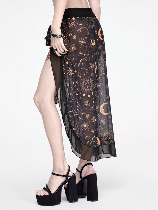 Punk Skeleton Hand Print Semi-Transparent Mesh Cover-Up