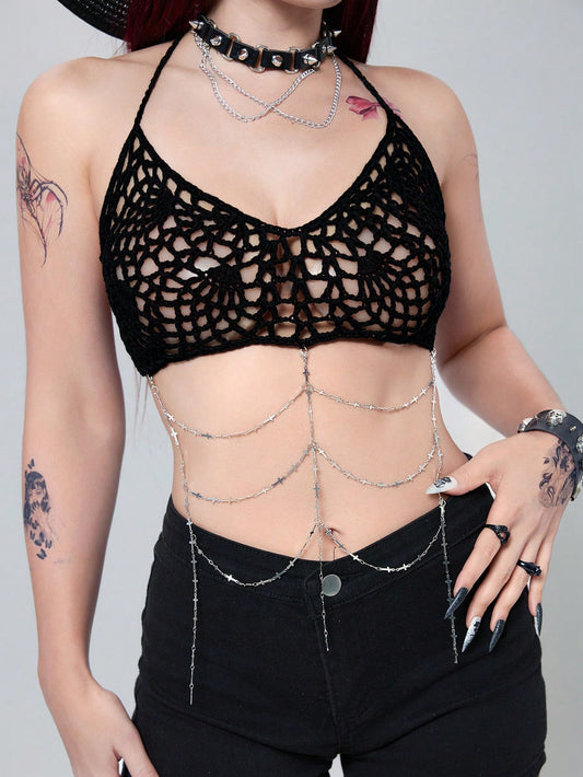 Goth Hollow Out Solid Halter Cover Up Top
