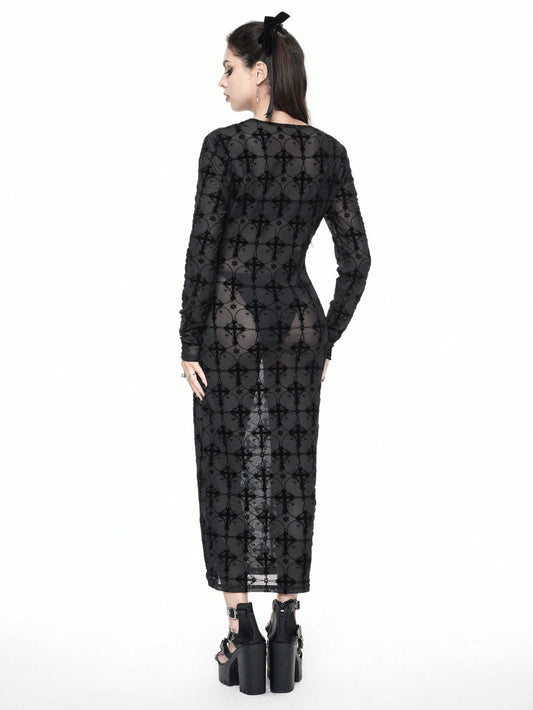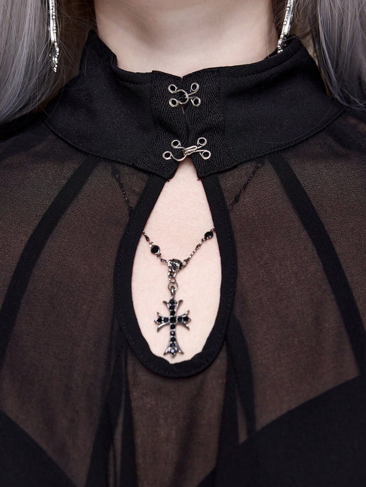 Gothic Sheer Mesh Cross Overlay Cover Up