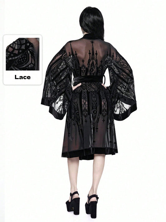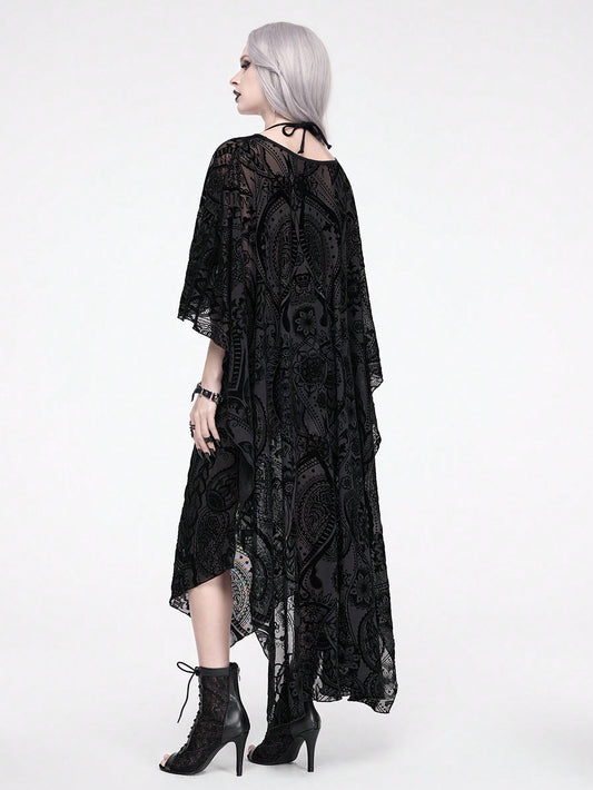 Goth Floral Vine Flocked Mesh Cover Up