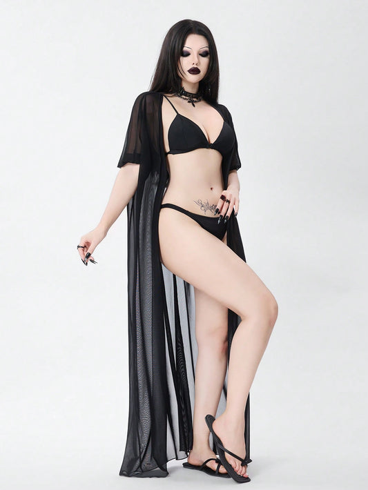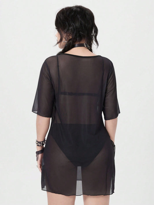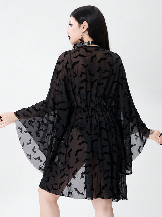 Summerween Goth Bat-Shaped Mesh Sheer Cover Up