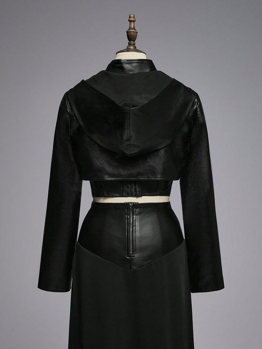 Gothic Punk Hooded Cropped PU Leather Jacket