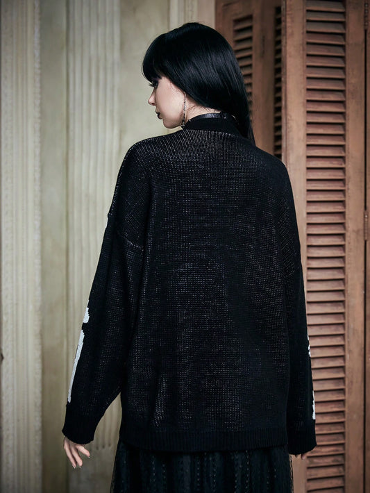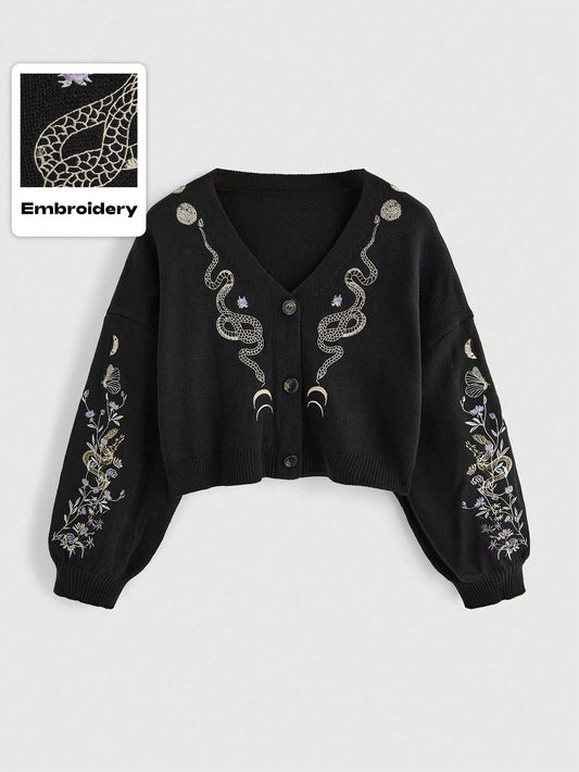 Gothic Dark Mysterious Garden Snake Embroidery Loose Knit Cardigan