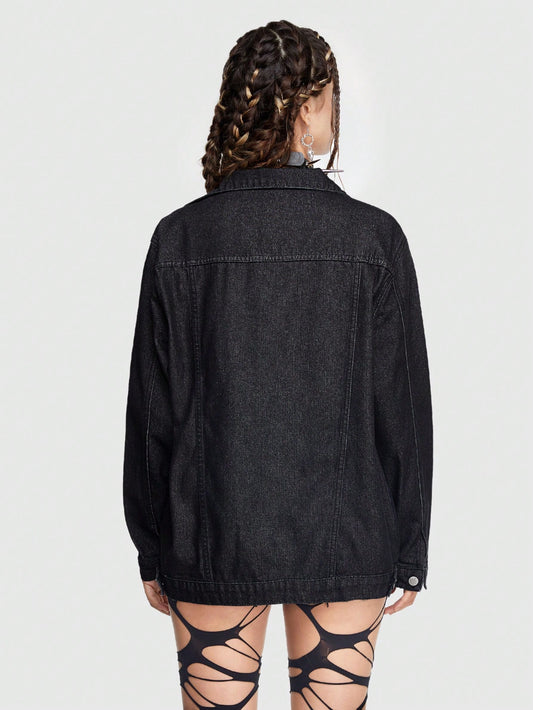 Gothic Spider Web Embroidery Loose Straight Denim Jacket