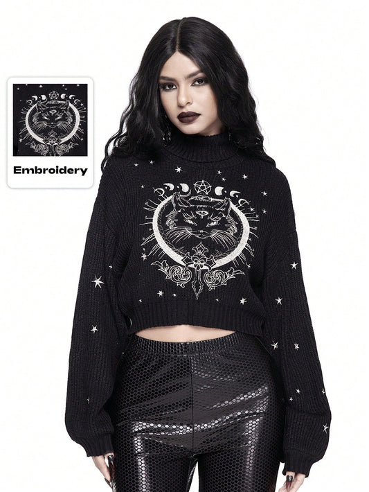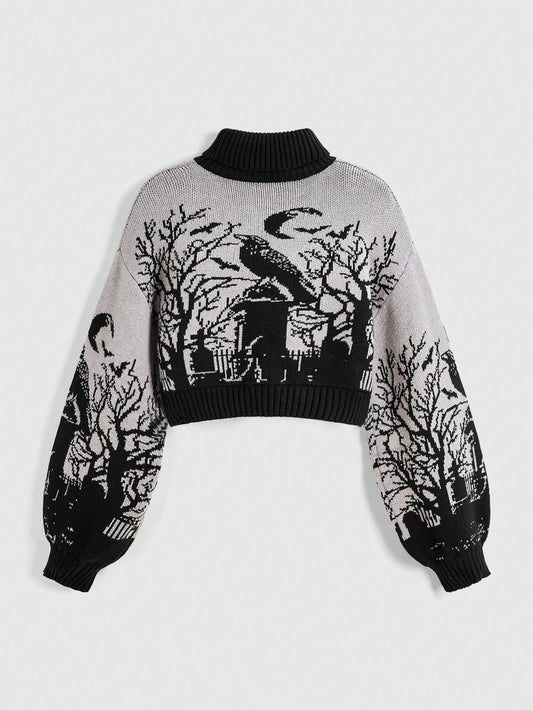 Dark Raven Gothic Turtleneck Knitted Crop Sweater