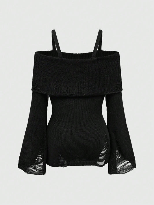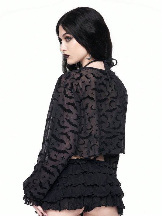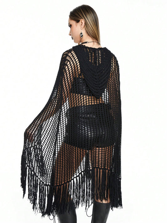 Goth Vintage Hollow Out Poncho Knitted Hooded Cardigan Cover Up