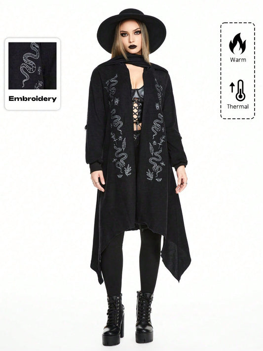 Goth Snake Floral Embroidered Hooded Scarf Cloak Jacket