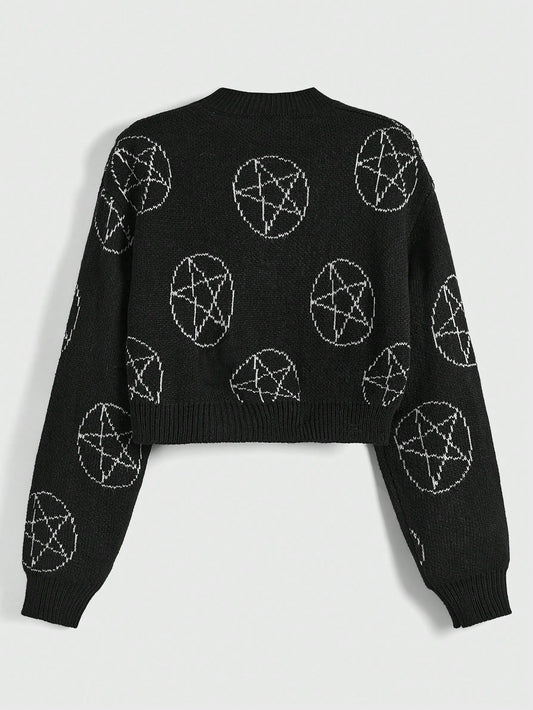 Witchy Pentagram Pattern Drop Shoulder Cardigan
