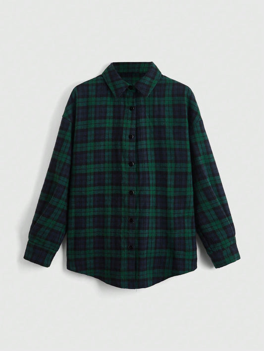 Grunge Punk Back Patch Drop Shoulder Flannel