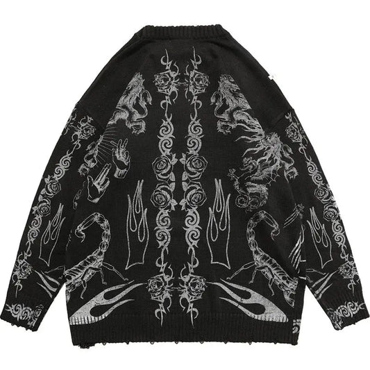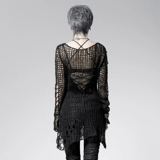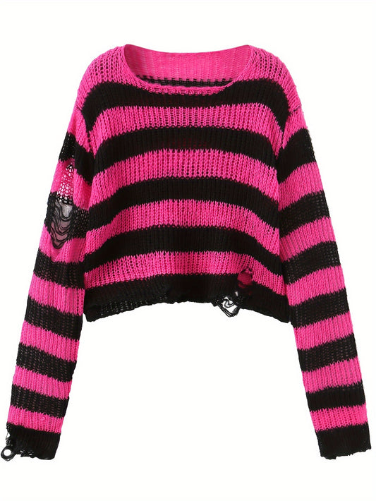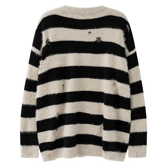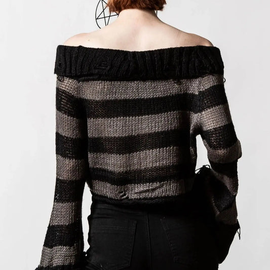 Dark Queen Striped Off Shoulder Distressed Sweater