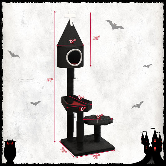 Gothic Cat Tree for Large Cats with Coffin Bed