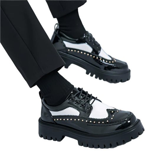 Black and White Punk Loafer Shoes