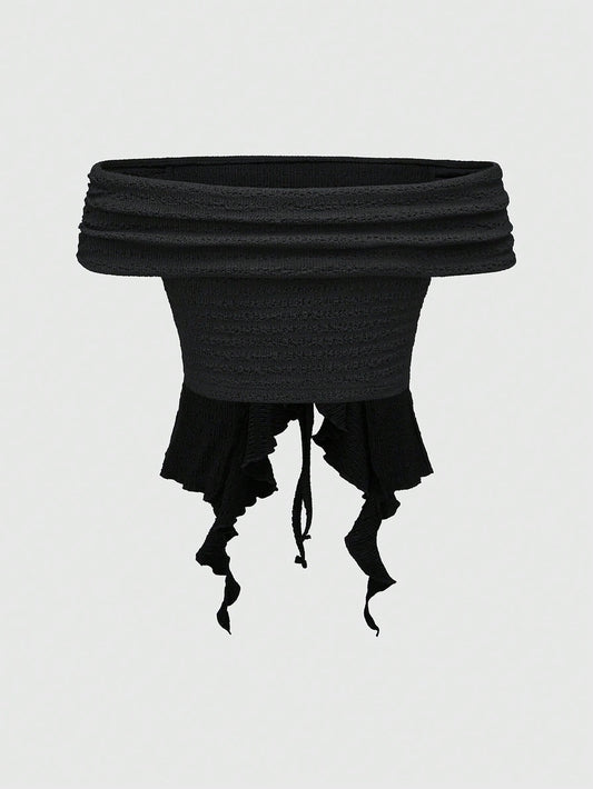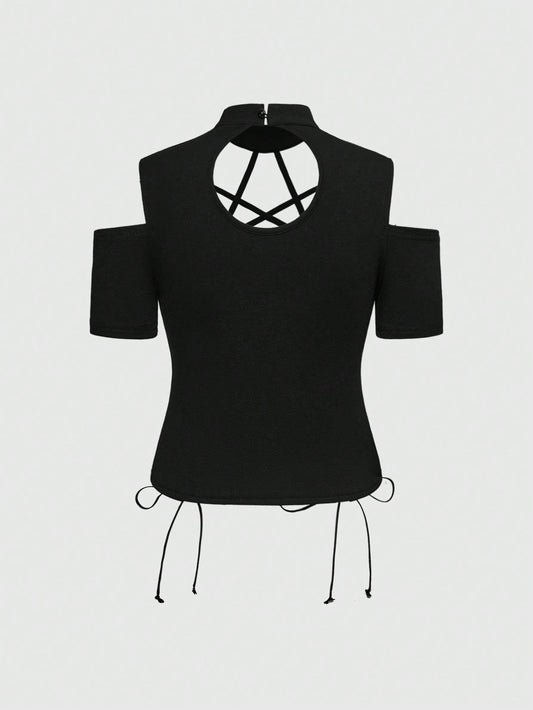 Gothic Cross Asymmetric Hem Off-Shoulder Crop Top